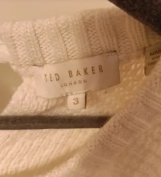 Vestido de punto fino de Ted Baker en color blanco. Tiene un diseño de manga corta y un corte holgado. Casi nuevo, usado dos veces . - Tejido de punto calado. - Cuello redondo. - Bajo y puños de canalé.
