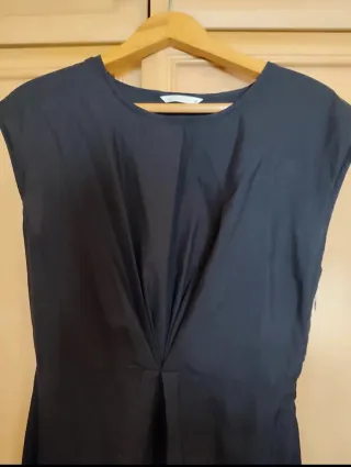 Vestido de verano Lefties con un diseño elegante y moderno. Vestido negro muy fino de verano. La parte de arriba queda un poco suelto y después se estrecha en la cintura. Es talla M muy pequeña más bien es una S - Tejido ligero y fluido. - Detalle de drapeado en la parte delantera. - Corte favorecedor.