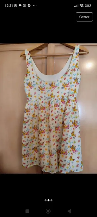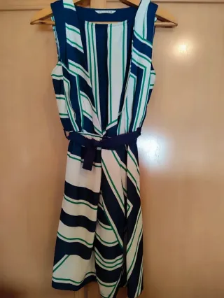 Vestido recto de verano con un bonito estampado de mariposas en varios tonos. Falta cinturón - Diseño sin mangas. - Largo hasta la rodilla. - Falta el cinturón.