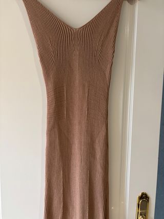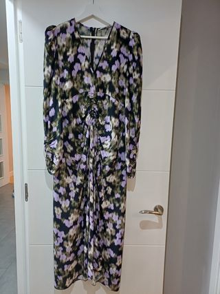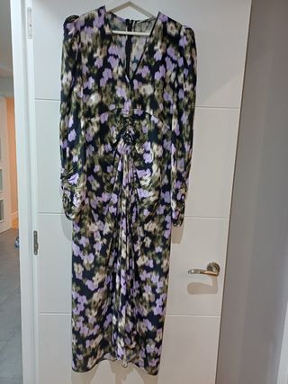 Vestido largo de Massimo Dutti, sin estrenar. - Diseño elegante con detalles dorados en el hombro. - Manga larga. - Cintura elástica.