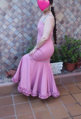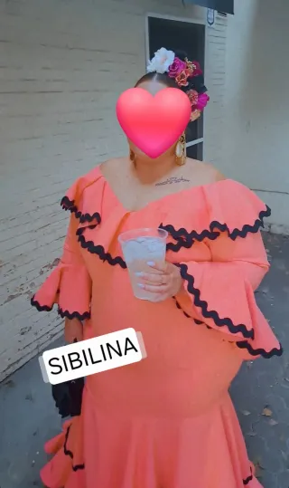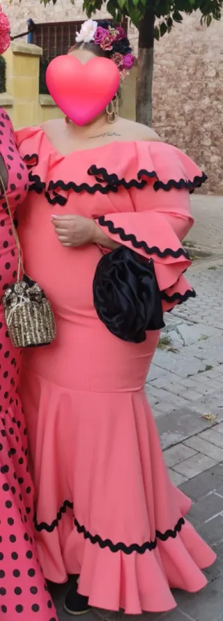 Vestido de flamenca con una sola puesta de la marca Sibilina. -Talla 60 -Color melocoton con detalles negros. -Costó 340€ (actualmente en tienda por ese mismo precio si lo quieres en esta talla) -Dejo foto del modelo en la web de la marca.