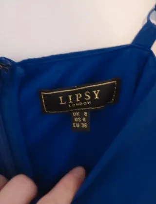 Elegante vestido azul con tirantes ajustables y un favorecedor escote en V. Presenta un detalle de nudo en la parte delantera y un volante en el bajo. - Escote en V. - Tirantes ajustables. - Detalle de nudo. - Volante en el bajo.