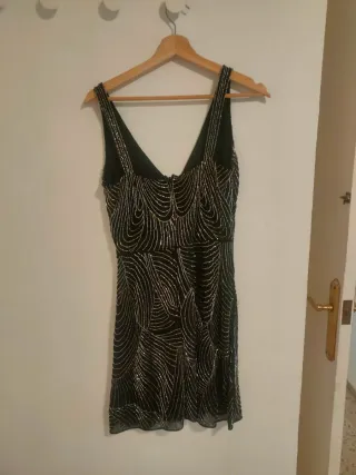 Descripción: Vendo vestido de fiesta negro con lentejuelas y manga media. Ideal para eventos, fiestas, cenas especiales o celebraciones. ✔️ Diseño elegante y favorecedor ✔️ Lentejuelas que aportan brillo sin ser excesivo ✔️ Manga media, cómodo y estiliza ✔️ Muy buen estado Perfecto para bodas, fiestas o noches especiales. Lo vendo porque ya no lo uso.