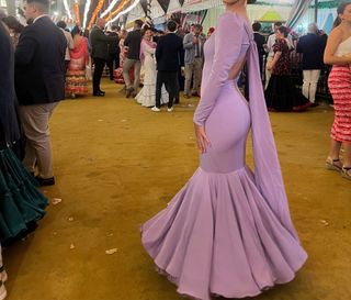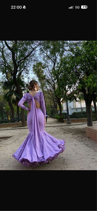Vestido de flamenca en color lila, con muy poco uso. - Solo se ha puesto 3 veces. - No tiene ninguna mancha. - Tiene bolsillo incorporado. - Talla 32,34 y 36 tiene para sacar un poco. - Esta en muy buen estado.