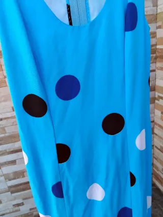 Vestido de flamenca con un diseño alegre y llamativo. Se encuentra en buen estado y ha tenido poco uso. - Diseño de lunares en varios colores. - Volantes en la parte inferior. - Cremallera en la espalda.