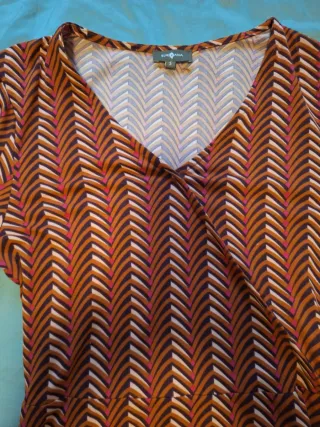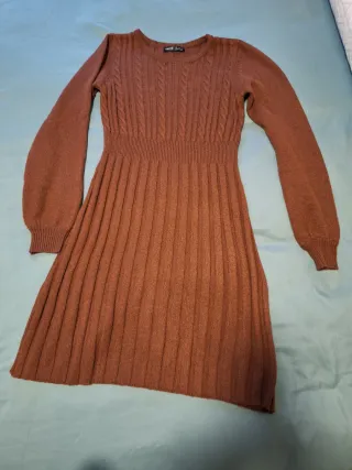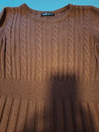 Vestido de manga media con un diseño moderno y cómodo. Usado una sola vez. El tallaje es más bien grande. No lo descambié porque perdí el ticket. Yo lo considero más bien una XL. Aunque la talla es una L. - Tejido suave y agradable al tacto. - Corte holgado con volantes en la parte inferior.