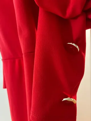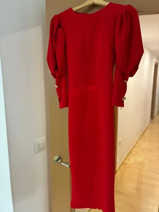 Elegante vestido largo de color rojo. - Mangas largas abullonadas. - Puños con botones. - Corte recto.