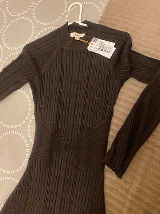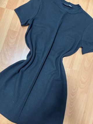 Vestido de punto de Zara, ideal para la temporada de invierno. Su diseño versátil lo hace perfecto para diversas ocasiones. - Manga corta. - Cuello redondo acanalado. - Corte recto con caída. - Costura central vertical. NO RESERVO