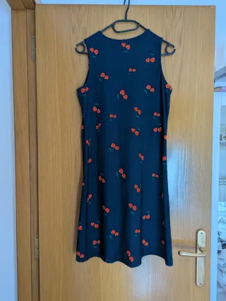 Vestido de verano azul con cerezas, es T.M