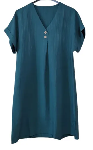 Vestido de verano con escote en V manga corta, diseño elegante casual con botones decorativos confeccionado en tejido ligero y transpirable. Se vende sin el cinturón . El color es verde claro como se muestra en la etiqueta pero al tomar las fotos por la luz sale ese tono
