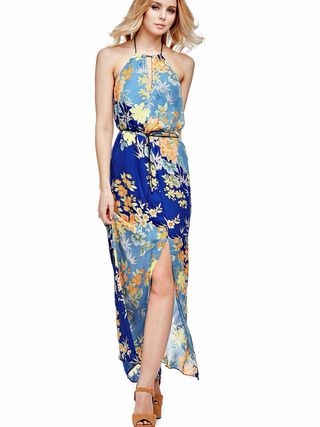 Vestido Guess Floral Halter Maxi Azul