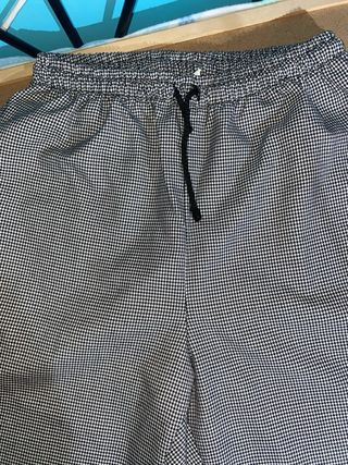 Pantalón de vestir con un estilo deportivo y moderno. Perfecto para un look casual o semi-formal. - Diseño de cuadros pequeños. - Cintura elástica con cordón ajustable. - Corte recto en las piernas.