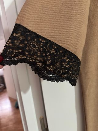 Vestido de Zara con un diseño elegante y detalles de encaje. - Manga corta. - Bajo con detalle de encaje negro. - Puños con detalle de encaje negro.