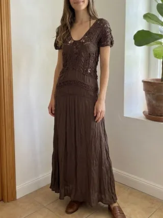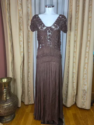 Vestido Zara Marrón Crochet Largo