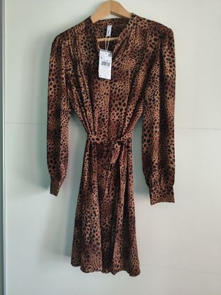 Vestido cruzado con un llamativo estampado animal. Buenos con etiqueta - Diseño envolvente. - Cinturón para anudar. - Tejido ligero y fluido. - con forro