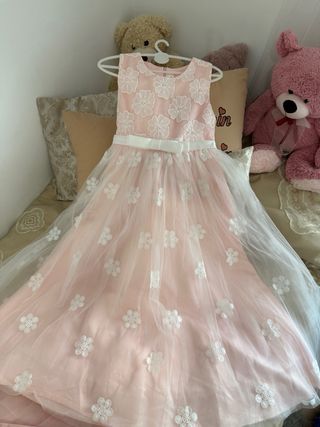 Vestido fiesta niña rosa y blanco
