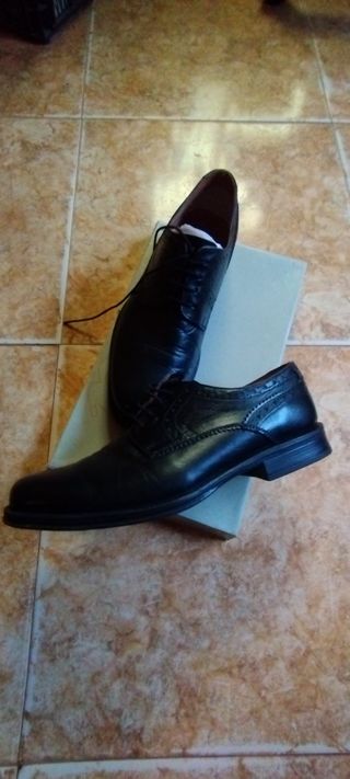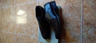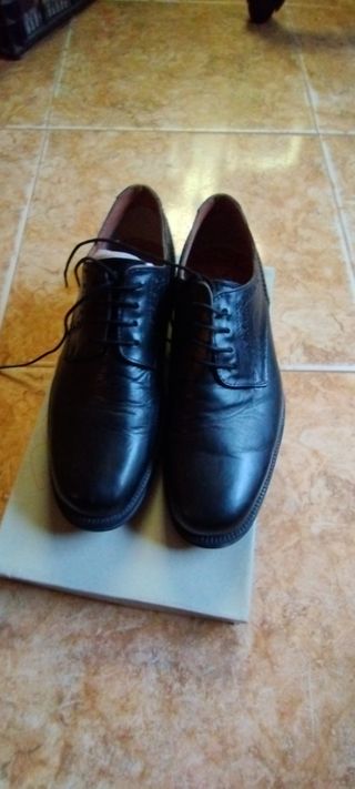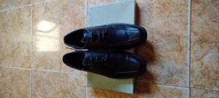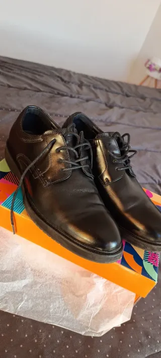 Elegantes zapatos de vestir negros, talla 42, en excelente estado, como nuevos. Ideales para ocasiones formales o de negocios. - Diseño clásico y atemporal. - Material exterior de cuero. - Cierre con cordones.
