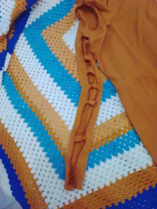 Vestido naranja cuello alto manga larga