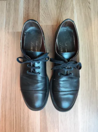 Elegantes zapatos de piel para mujer, estilo Dr Martens. Hechos a mano en Italia, duraderos. Diseño clásico con cordones. Puntera reforzada.Tacón bajo y cómodo. No hago envíos, precio no negociable, no acepto ofertas.