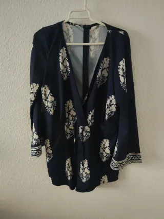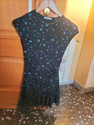 Vestido Bershka floral negro y azul Talla S