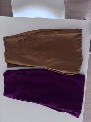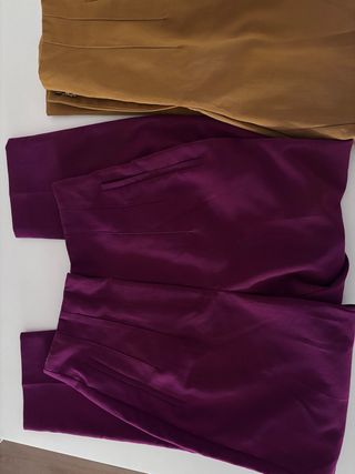 Pantalones de vestir de Zara con un diseño clásico de pinzas. El color marrón es versátil y el morado añade un toque de color. - Diseño con pinzas delanteras. - Bolsillos discretos. Ambos con un solo uso