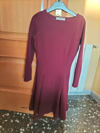 Vestido de manga larga en color granate. Diseño elegante y versátil. - Corte favorecedor. - Tejido cómodo y con caída. - Queda muy bonito puesto. - Es de entretiempo. - Está como nuevo.