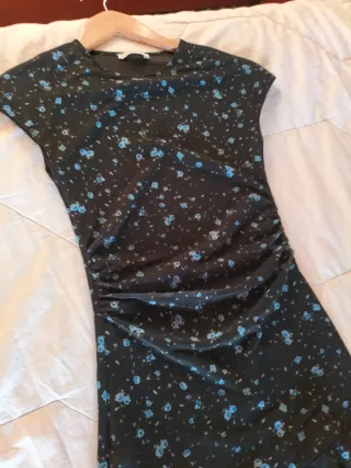 Vestido de Bershka con un bonito estampado floral. - Diseño con fruncido lateral. - Manga corta. - Tejido ligero y fluido. - Puesto queda precioso. - Ceñido con volante. - Solo un uso.