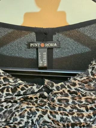 Vestido de la marca Punt Roma con un llamativo estampado animal. - Diseño con volantes en las mangas. - Tejido con textura y drapeado. - Largo hasta la rodilla.