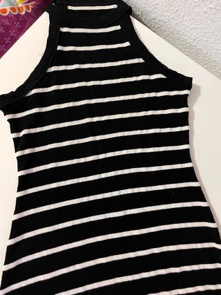 Vestido de rayas halter negro y blanco
