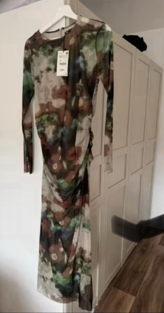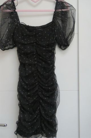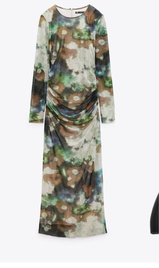 Vestido de la marca Zara con un llamativo estampado.Precio original 35,99 , lo ha llevado Amelia Bono y ha triunfado con este vestido de Zara que hace tipazo y lo encaja en un perfecto "rainy day look" - Diseño de tul. - Detalle de fruncido lateral. - Manga larga.
