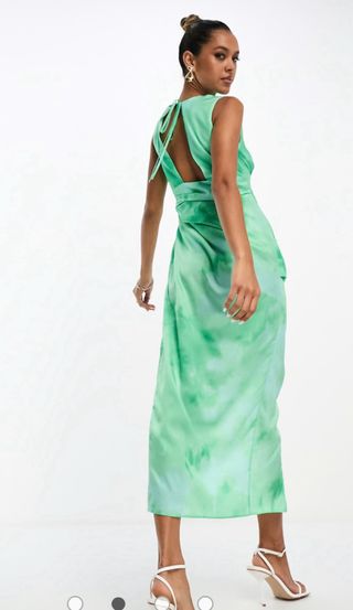 Vestido midi verde drapeado con falda cruzada y estampado efecto acuarela de satén de ASOS DESIGN Ahora 69,99 €(-24%)