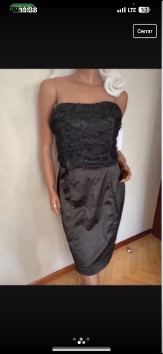 Elegante vestido de dos piezas con corpiño de encaje y falda de satén. - Diseño sin tirantes. - Corpiño con detalle de encaje. - Falda con acabado satinado.