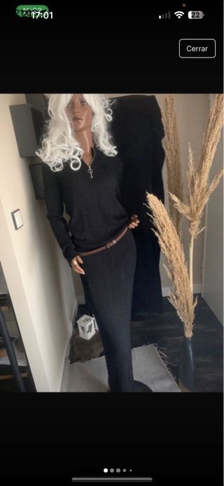 Vestido largo de punto con cuello alto y cremallera. - Diseño de canalé. - Cinturón fino incluido. - Manga larga.