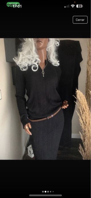 Vestido de punto con un diseño elegante y moderno. - Tejido suave y cálido. - Cuello alto tipo cisne. - Diseño de trenzas. - Largo hasta la rodilla.