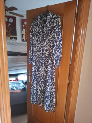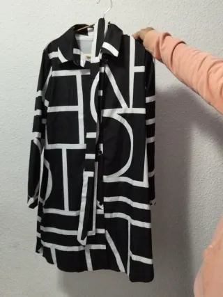 Vestido de manga larga con un llamativo estampado. - Diseño moderno y original. - Corte favorecedor. - Cierre de botones. - sin uso - perfecto estado