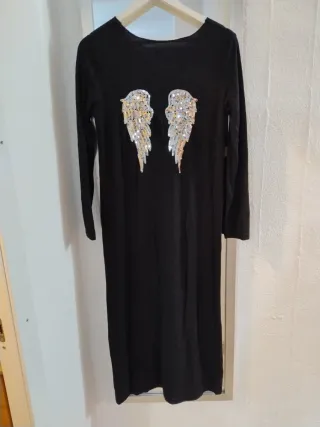 Vestido fiesta lentejuelas negro y plata. Talla 38