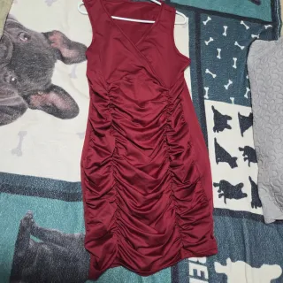 Vestido rojo flores tipo corsé ajustado, es muy cómodo ideal para una ocasión especial, usado solo una vez para una sesión de fotos. La tela es de muy buena calidad.