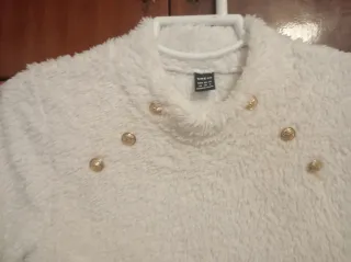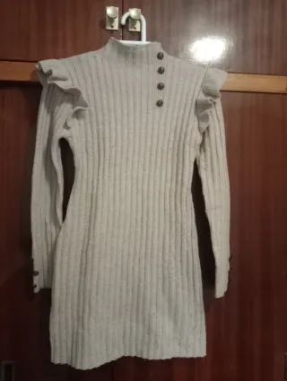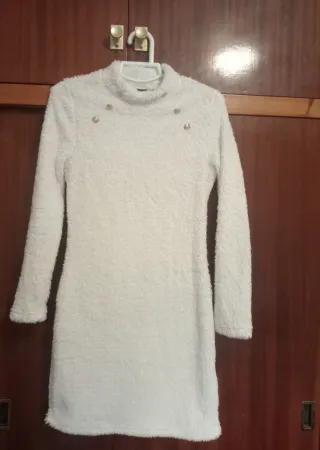 Vestido de manga larga con cuello alto y un tacto muy suave. - Diseño de punto peludo. - Detalle de botones dorados en el cuello. - Calienta bastante