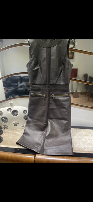 Vestido de Michael Kors en piel color marrón. Un diseño elegante y sofisticado. - Material: Piel. - Color: Marrón. - Talla: XS / 34 / 6.