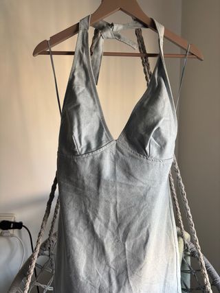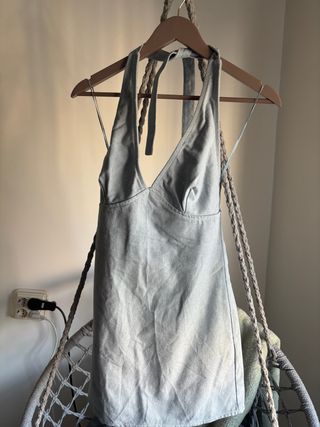Vestido vaquero de Stradivarius con un diseño moderno. - Corte halter. - Tejido vaquero ligero.