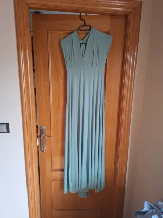 Vestido largo de tela suave y fluida, con un diseño versátil que permite múltiples formas de atar. - Diseño de cuello halter. - Falda larga con caída. - Tejido ligero y cómodo.