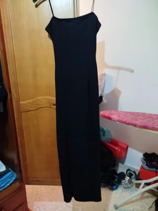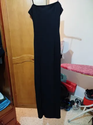 Nuevo con solo una puesta. Elegante vestido largo negro, ideal para fiestas y eventos especiales. Su diseño sofisticado y moderno lo hace perfecto para cualquier celebración.Puesto queda perfecto muy fino y elegantísimo. De tirantes finos, largo hasta los tobillos y abertura pronunciada en lateral derecho.