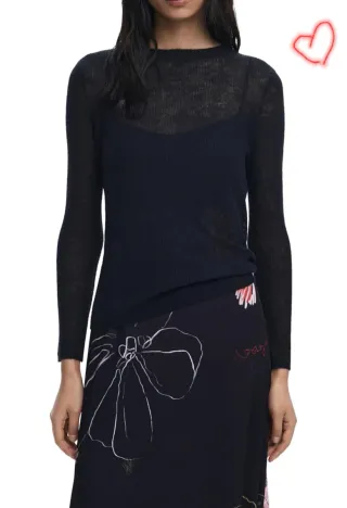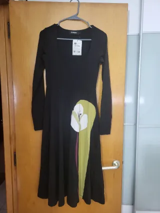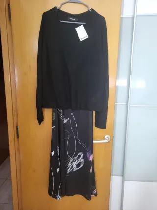 Vestido Desigual con un diseño único de dos piezas. - Combina un jersey de manga larga con un vestido estampado. - El jersey es de punto fino y semitransparente. - El vestido es de tirantes y tiene un estampado. - Ideal para crear looks modernos y originales.
