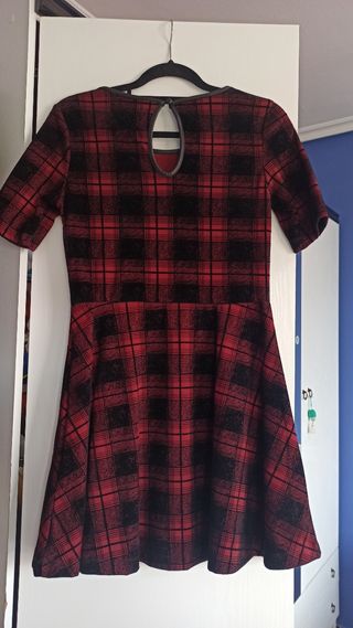 Vestido Divided de la marca HyM. Diseño en negro y granate, las partes negras son con efecto aterciopelado. Efecto cuero en el escote, botón en parte trasera. Tenido grueso, con cuerpo. Usado una única vez.