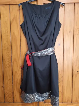 Vestido fiesta negro plateado talla S/M