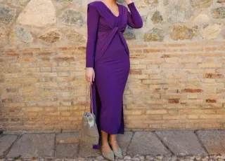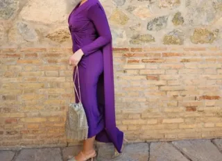 Vestido morado largo con capa