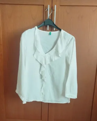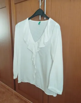 Blusa elegante para chica con un diseño moderno y favorecedor. - Cuello en V con volantes. - Manga larga. - Tejido ligero y vaporoso.
