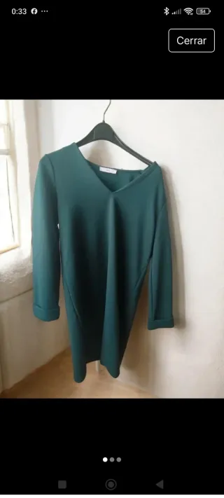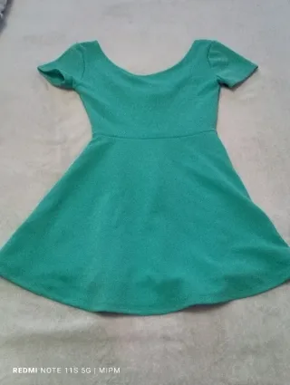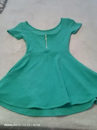 Vestido costo turquesa talla s, manga corta, cremallera espalda, elástico, escote bailarina