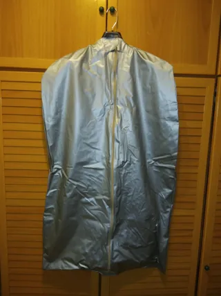 Funda protectora para guardar vestidos o trajes,para viajes o para el hogar. Es ideal para mantener la ropa limpia y protegida. - Cierre de cremallera frontal. - Material resistente y duradero. - Tuve que abrirle un poco para poder cerrar la cremallera por completo,nada importante,hace su función. (Muestro en la foto 3).