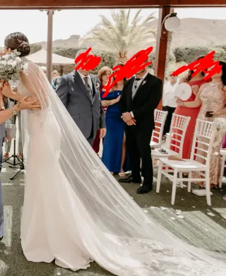 Vestido de novia Sedka, modelo Barcelona. Un diseño elegante y moderno. - Corte sirena. - Cuerpo de encaje. - Tirantes finos. - Falda con cola. Medidas: Pecho 88 Cintura 78 Cadera 112 Y mido 1,79 de altura. Tiene algunos desgastes en la cola pero bastante difícil de apreciar. El precio original del vestido es de 2100€. Se vende por separado la capa por 200€ más.